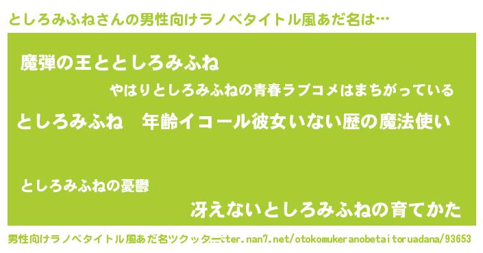 | 女子向けラノベタイトル風あだ名 | 『としろみふねの玉の輿計画!』 |