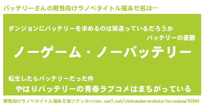 | ヒーロー風カッコイイあだ名 | 『慈愛の使者バッテリー』『黄金騎士バッ』 |
