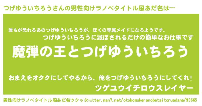 | 意味不明あだ名 | 『住所不定無職つげゆういちろう(9歳)』 |