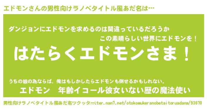 | ヒーロー風カッコイイあだ名 | 『魔戒騎士エド』『仮面エドダー』 |