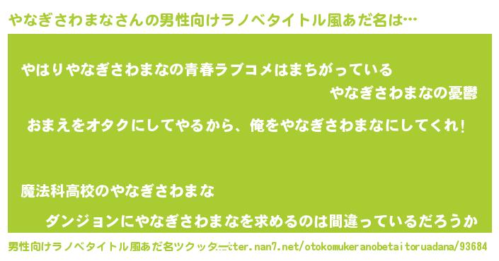 | 女子向けラノベタイトル風あだ名 | 『やなぎさわまな恋絵巻』 |
