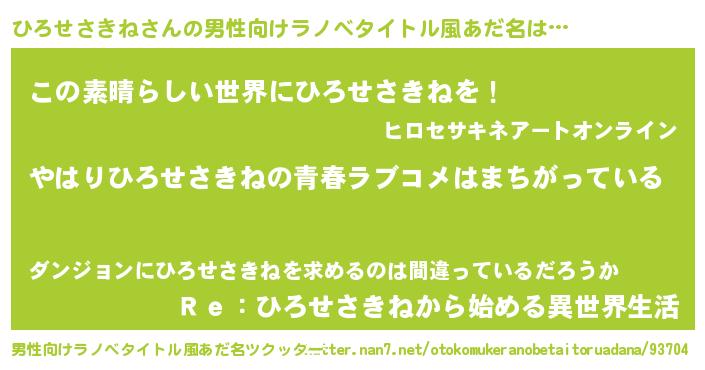 | 女子向けラノベタイトル風あだ名 | 『ひろせさきねの雑貨屋さん』 |