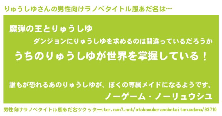 | 女子向けラノベタイトル風あだ名 | 『男装りゅうしゆの憂鬱な任務』 |
