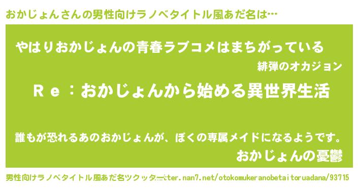 | 女子向けラノベタイトル風あだ名 | 『闇のおかじょん』 |