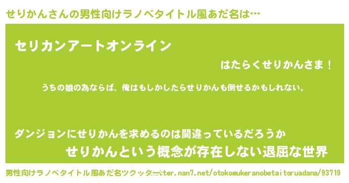 | 女子向けラノベタイトル風あだ名 | 『せりかんの婚約者』 |