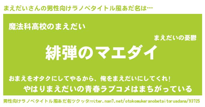 | ヒーロー風カッコイイあだ名 | 『超時空戦士マエダイ』『仮面マエダー』 |