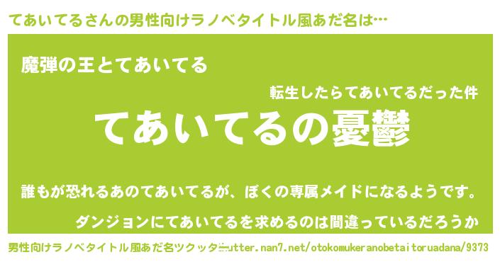 | 胡散臭い通販商品みたいなあだ名 | 『必ず成功する霊験あらたかなお札…その名も「てあいてる」』 |