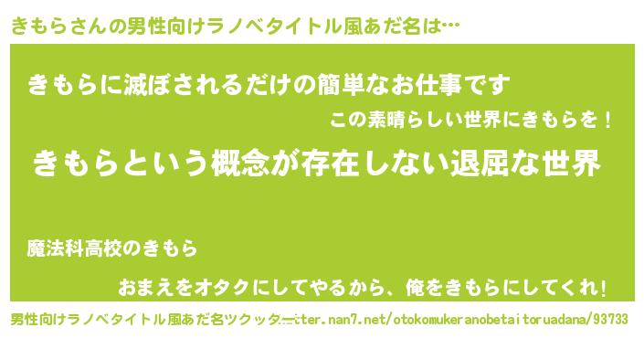 | 胡散臭い通販商品みたいなあだ名 | 『来世でも幸せになれる水素水…その名も「きもら」』 |