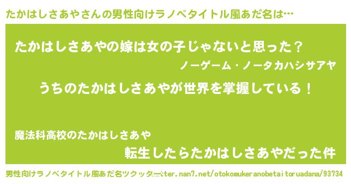| 伝説のあだ名 | 『覚醒した遊び人たかはしさあや』 |