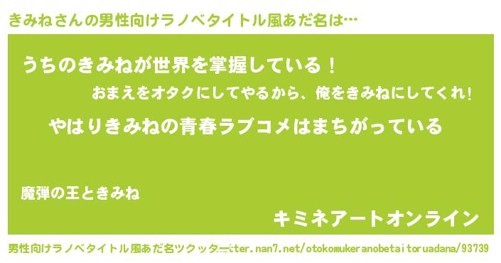 | 女子向けラノベタイトル風あだ名 | 『きみねの雑貨屋さん』 |