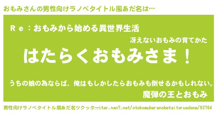 | 胡散臭い通販商品みたいなあだ名 | 『ガンによく効く高麗人参…その名も「おもみ」』 |
