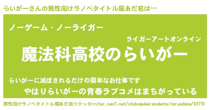 | 女子向けラノベタイトル風あだ名 | 『らいがーアンティーク』 |