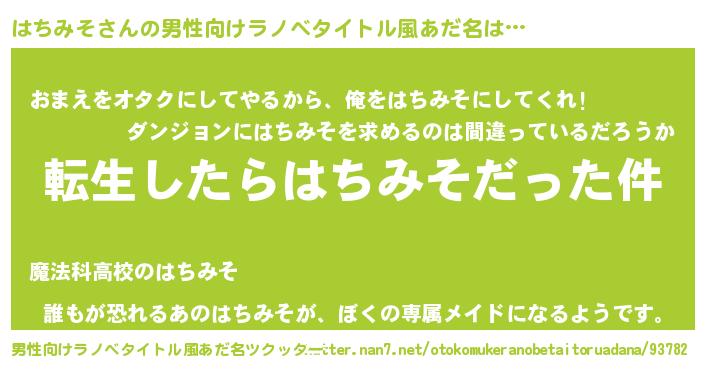 | 女子向けラノベタイトル風あだ名 | 『はちみその玉の輿計画!』 |