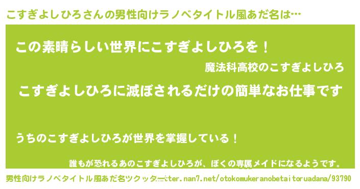 | 意味不明あだ名 | 『住所不定無職こすぎよしひろ(14歳)』 |