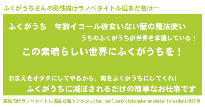 | 胡散臭い通販商品みたいなあだ名 | 『あなたにだけ特別に提供する限定10本のレアな日本酒…その名も「ふくがうち」』 |