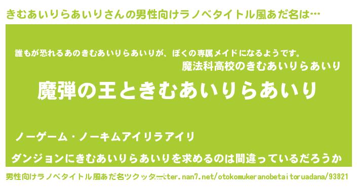 | 欧米人風あだ名 | 『ダレノガレきむあいりらあいり』 |