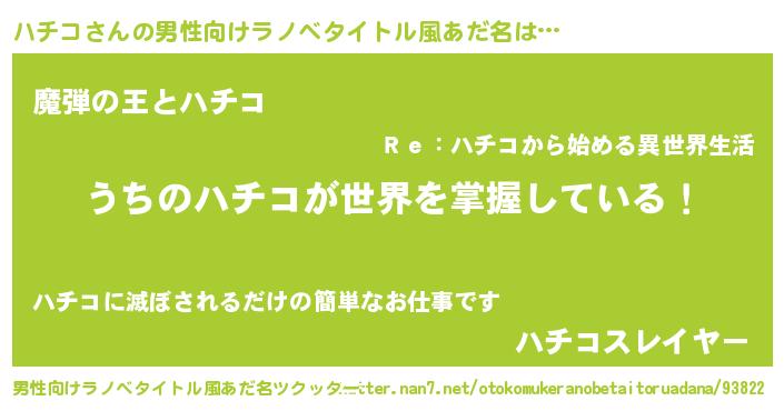 | 意味不明あだ名 | 『住所不定無職ハチコ(3歳)』『自称ハチコ』 |