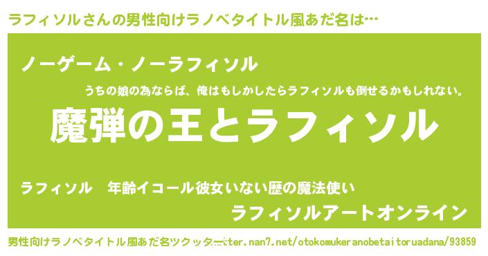 | 意味不明あだ名 | 『住所不定無職ラフィソル(86歳)』 |
