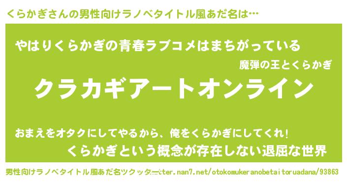 | 女子向けラノベタイトル風あだ名 | 『くらかぎ姫と円卓の騎士』 |