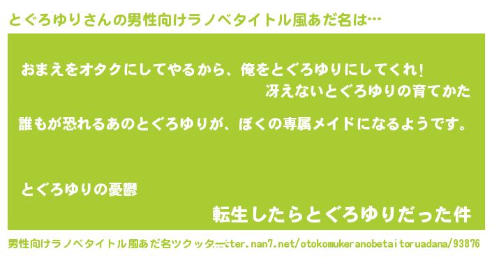 | ヘコむあだ名 | 『とぐろゆり(笑)』『とぐもー』 |