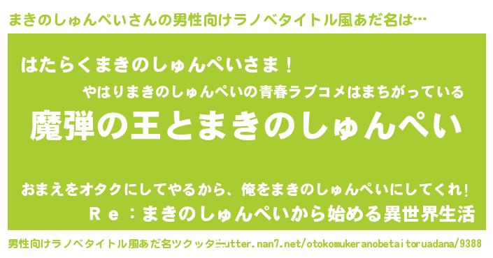 | 女子向けラノベタイトル風あだ名 | 『乙女ゲームの破滅フラグしかない悪役まきのしゅんぺいに転生してしまった…』 |