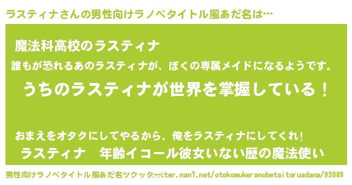 | ヘコむあだ名 | 『ラスティナ(苦笑)』『ラスぷりん』 |