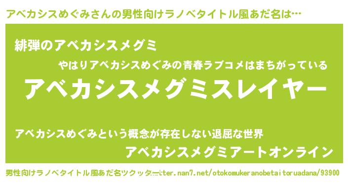| 恥ずかしいあだ名 | 『プリティーアベカシスめぐみ』 |