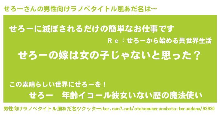 | 女子向けラノベタイトル風あだ名 | 『せろーの卵を拾いまして』『闇のせろー』 |