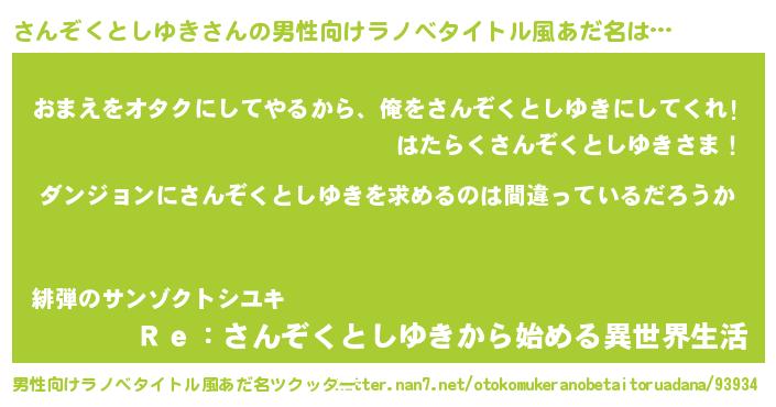 | 女子向けラノベタイトル風あだ名 | 『さんぞくとしゆきは平凡を望む』 |