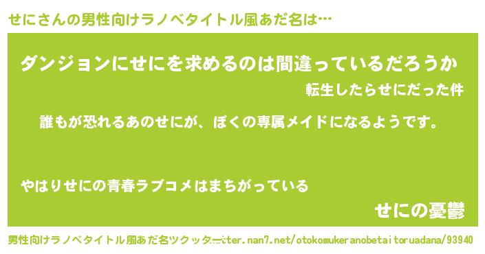 | ポケモン風あだ名 | 『ゼニセニ』『ヒセニ』『セニチュウ』 |