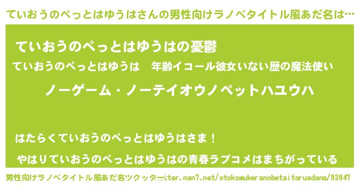 | ヒーロー風カッコイイあだ名 | 『慈愛の使者ていおうのぺっとはゆうは』 |