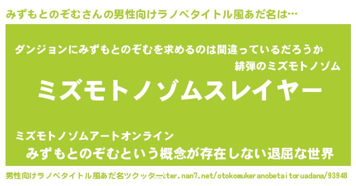 | ヒーロー風カッコイイあだ名 | 『黄金騎士ミズ』『ネオミズモトノゾム』 |