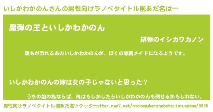 | 伝説のあだ名 | 『古文書に記された勇者いしかわかのん』 |
