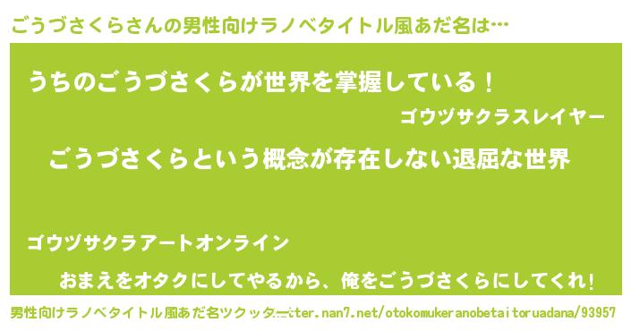 | 胡散臭い通販商品みたいなあだ名 | 『絶対に幸福をもたらす健康食品…その名も「ごうづさくら」』 |