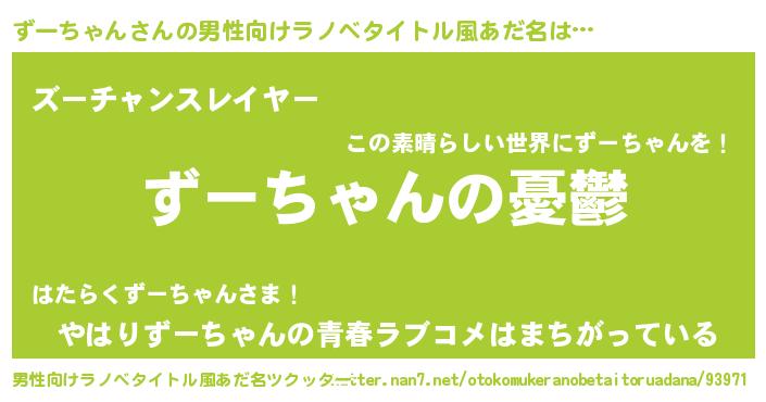 | ヒーロー風カッコイイあだ名 | 『スーパーズーチャン』『仮面ズーダー』 |