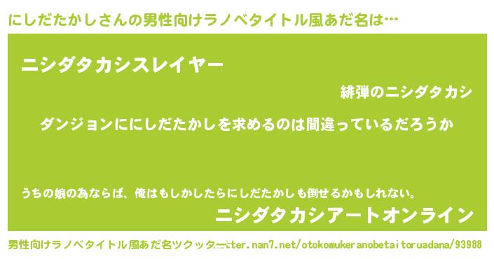 | 欧米人風あだ名 | 『ウサインにしだたかし』 |
