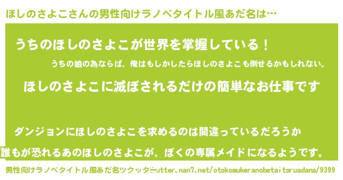 | 意味不明あだ名 | 『永久保存ほしのさよこ』 |