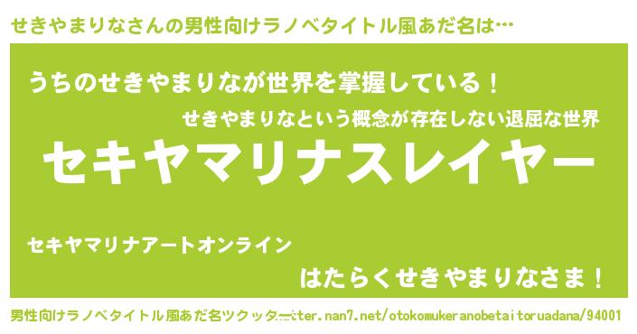 | ヒーロー風カッコイイあだ名 | 『ネオセキヤマリナ』『仮面セキダー』 |