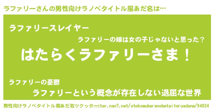 | ヘコむあだ名 | 『ラファリー(爆)』『ラフっちょ』 |