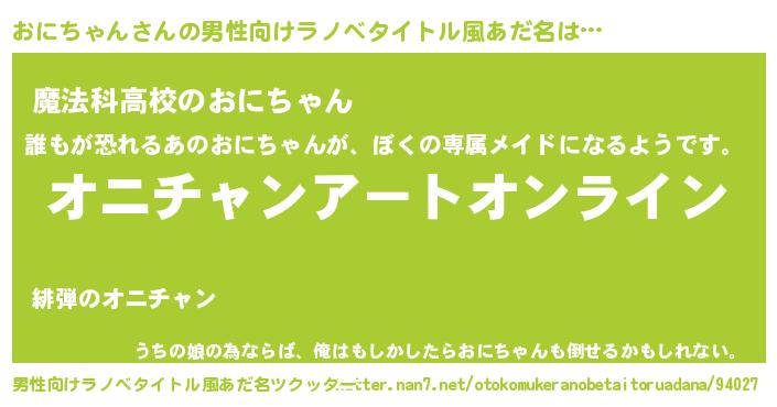 | 女子向けラノベタイトル風あだ名 | 『誰かこのおにちゃんを説明してください! ~契約から始まるウェディング~』 |