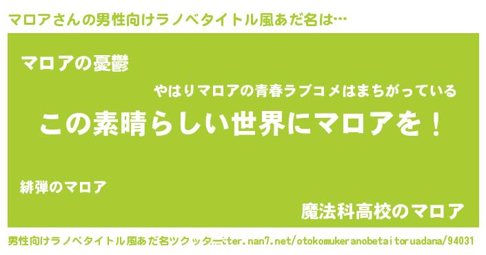 | 意味不明あだ名 | 『住所不定無職マロア(91歳)』『自称マロア』 |