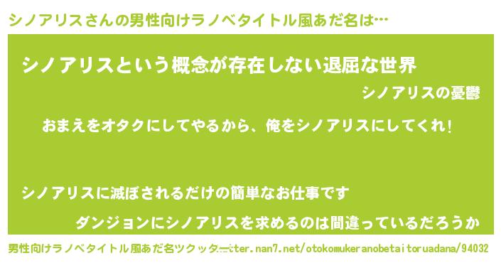 | ヒーロー風カッコイイあだ名 | 『正義の使者シノアリス』『暗黒騎士シノ』 |