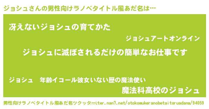| ヒーロー風カッコイイあだ名 | 『究極戦士ジョシュ』『スーパージョシュ』 |