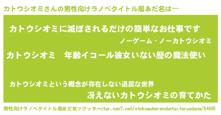 | ヘコむあだ名 | 『カトウシオミ(笑)』『カトふぇ~』 |