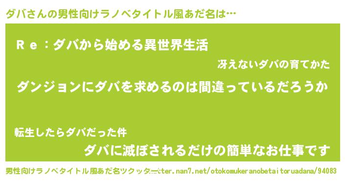 | ヒーロー風カッコイイあだ名 | 『魔戒騎士ダバ』『究極戦士ダバ』 |