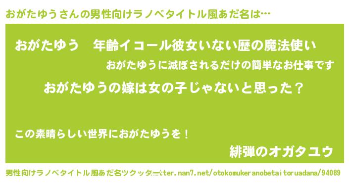 | 女子向けラノベタイトル風あだ名 | 『おがたゆうの卵を拾いまして』 |