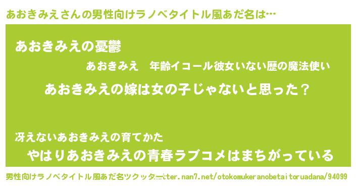 | 女子向けラノベタイトル風あだ名 | 『あおきみえの卵を拾いまして』 |