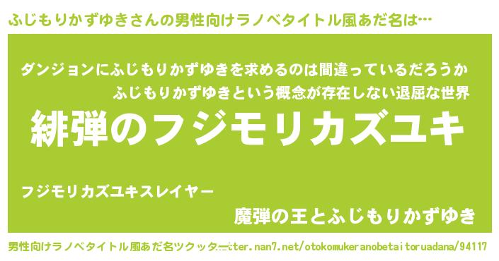 女子向けラノベタイトル風あだ名 | 『シンデレラふじもりかずゆき家の靴箱館』 |