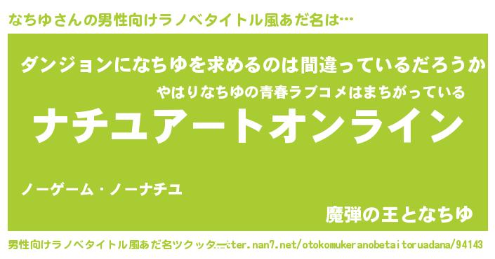 | ヒーロー風カッコイイあだ名 | 『スーパーナチユ』『魔戒騎士ナチ』 |