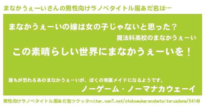 | 意味不明あだ名 | 『住所不定無職まなかうぇーい(6歳)』 |